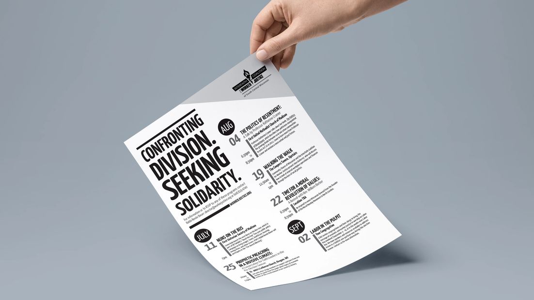 Calendar of Events Flyer and Postcard for the Interfaith Coalition for Worker Justice of SouthCentral Wisconsin.